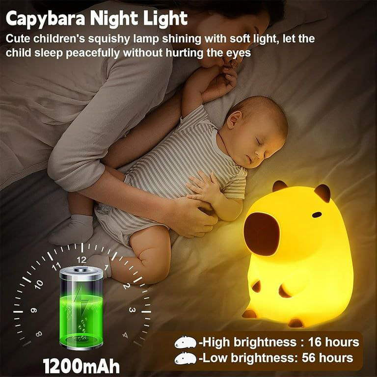 Cute Capybara Night Light – Rechargeable Silicone Touch Lamp for Kids & Home Decor